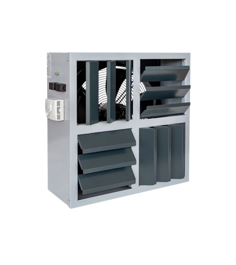 - podstropné ventilátory zaisťujú nútené prúdenie ohriateho vzduchu smerom dolu (do pracovnej zóny) a tým znižujú teplotný spád medzi hornou a spodnou časťou haly