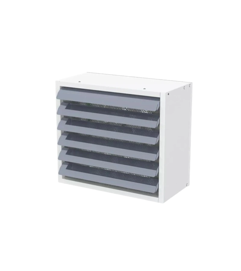 Kombinácia troch veľkostí výrobku a pätnástich výkonových radov dokážu pokryť tepelnú potrebu na vykurovanie od malých až po veľké objekty. Jednotky sú k dispozícii v nástennom či podstropnom prevedení a sú vybavené teplovodným výmenníkom, prípadne diponujú elektroohrevom.